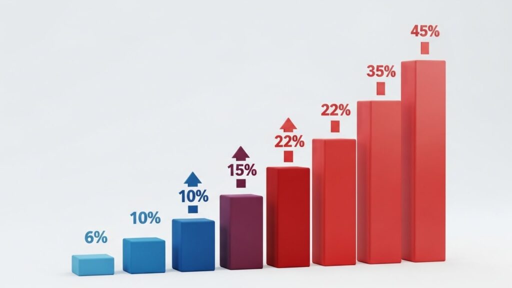 이게 무서운 점이 뭐냐면, 소득 구간을 살짝만 넘겨도 적용되는 세율이 확 뛴다는 거죠.