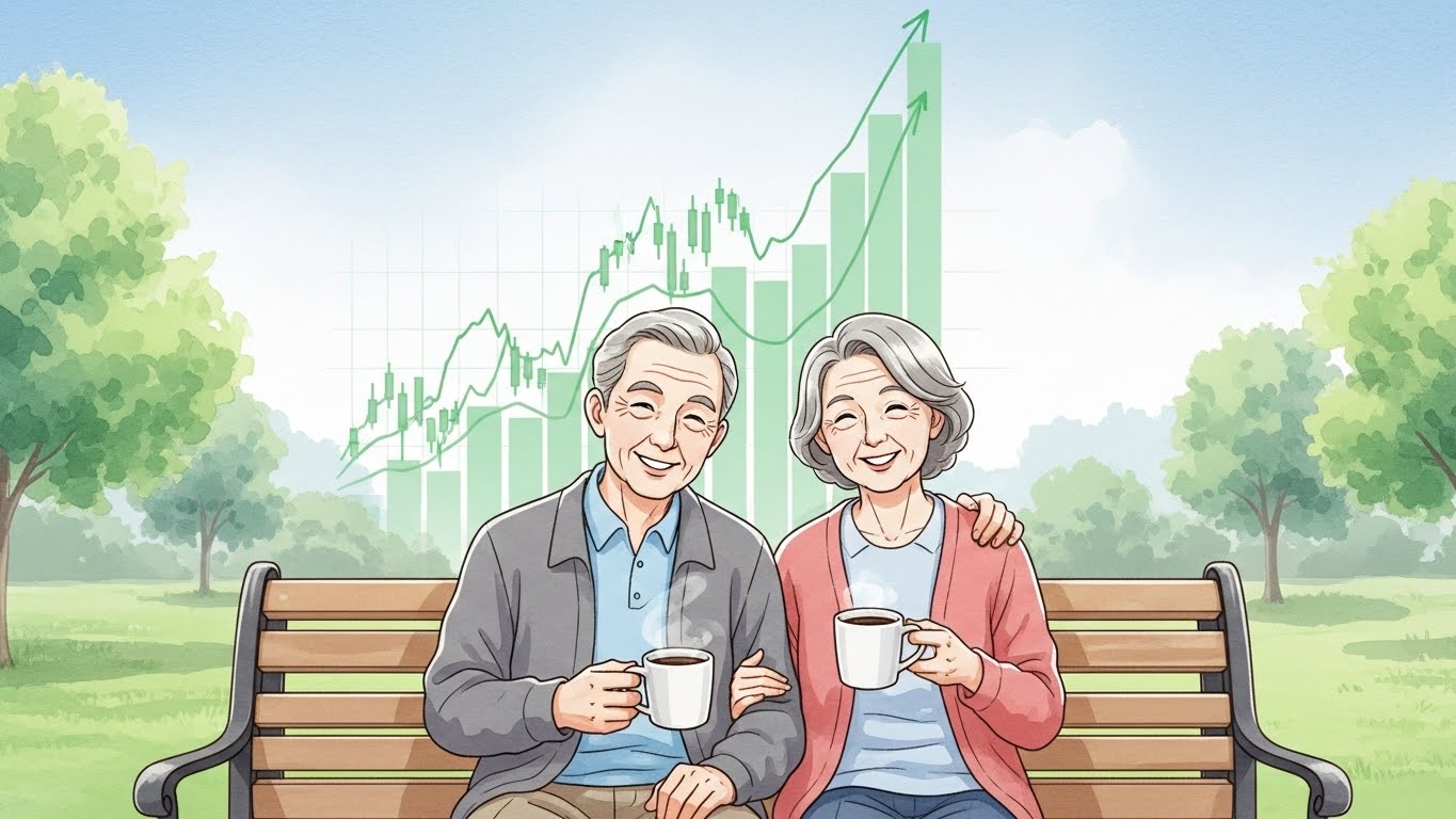 [이미지 #마지막: 밝은 미래를 향해 상승하는 화살표와 웃는 투자자]