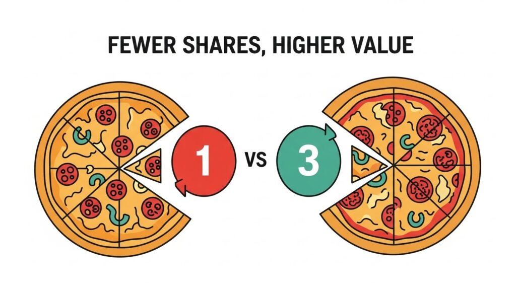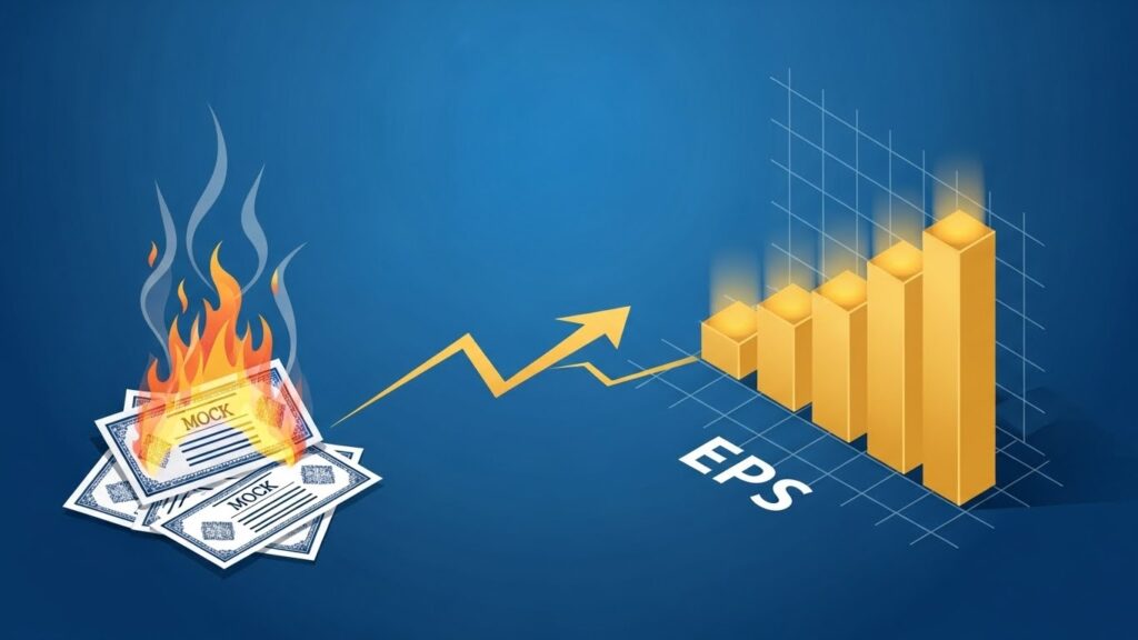 분모인 ‘주식 수’가 줄어들면 어떻게 될까요? 회사가 돈을 더 벌지 않아도(순이익이 그대로여도), EPS는 자동으로 올라갑니다.