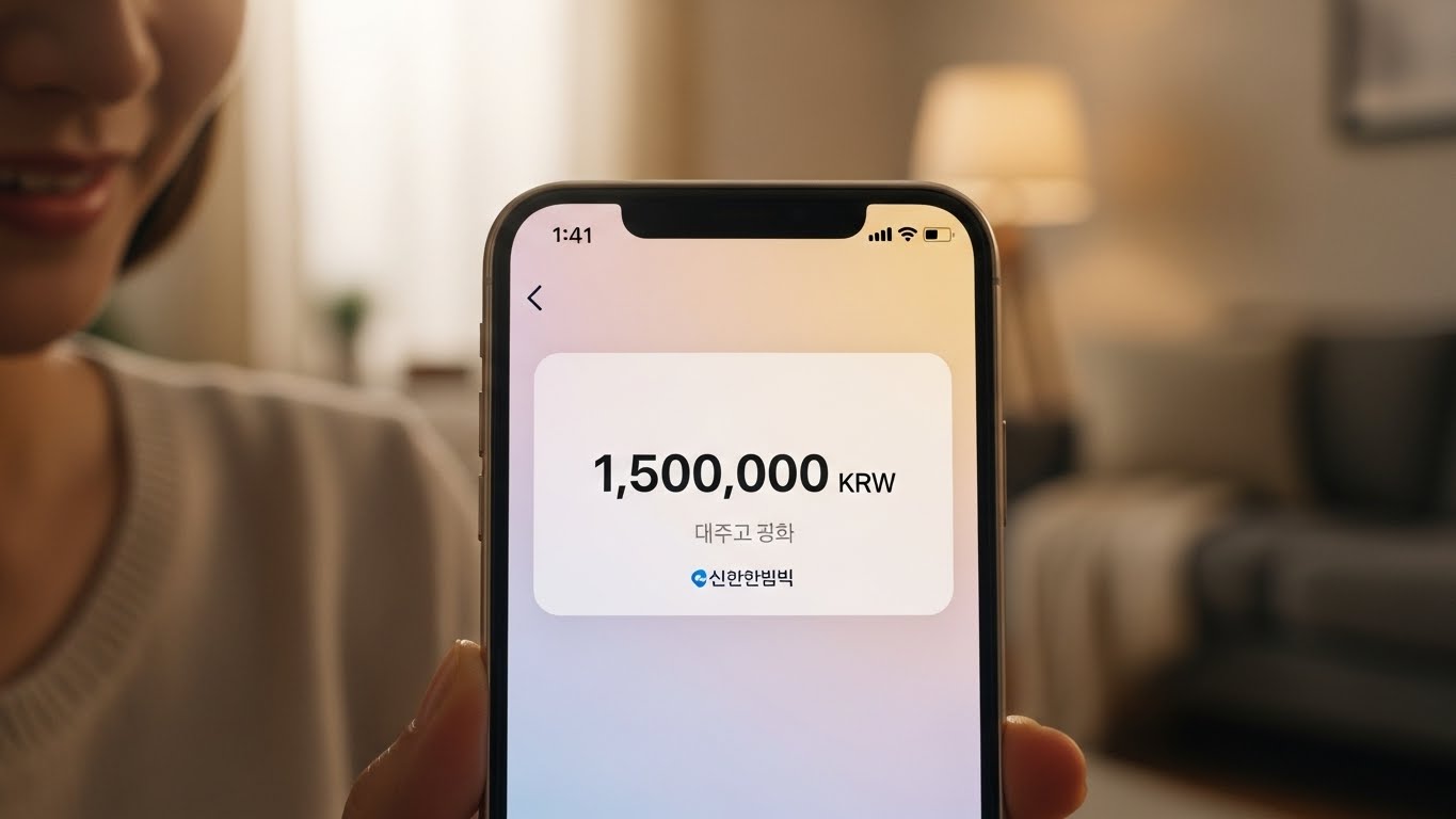 [이미지 마지막: 지갑에 돈을 넣는 행복한 모습]