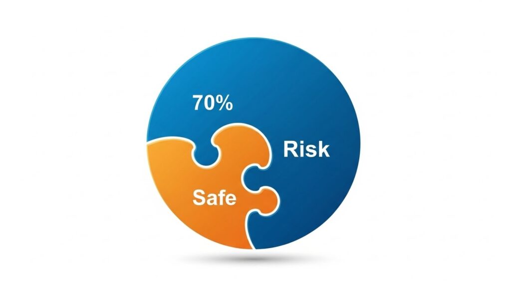 퇴직연금 DC형은 법적으로 위험자산(주식형)에 70%까지만 투자할 수 있습니다.
