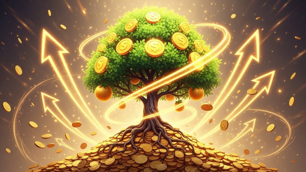 [이미지 마지막: 커피 한 잔의 여유를 즐기며 스마트폰으로 주식 계좌를 흐뭇하게 바라보는 모습]
