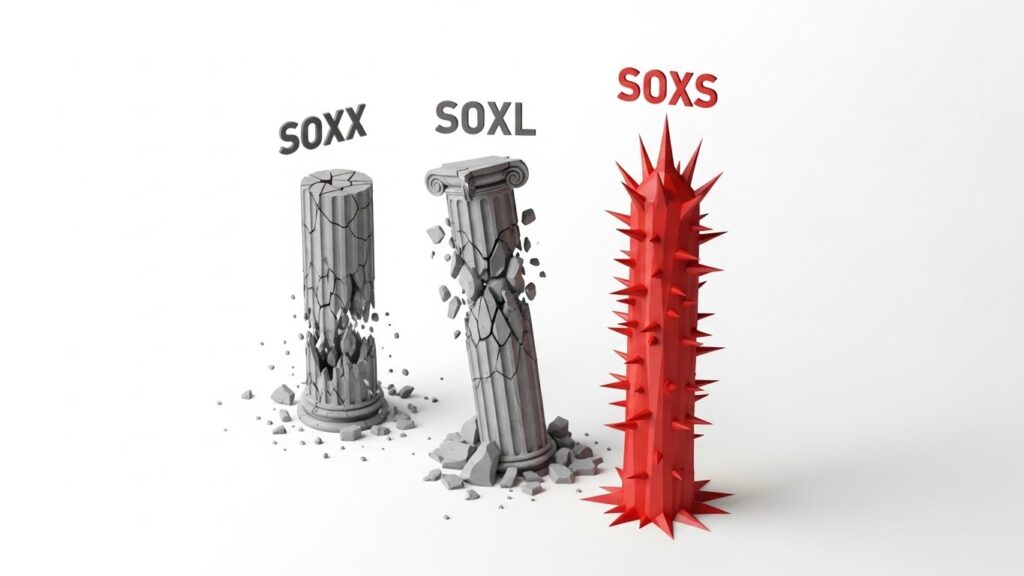 많은 분이 SOXL(반도체 상승 3배)은 잘 아시는데, SOXS는 그 정반대 편에 서 있는 라이벌이라고 보시면 됩니다.